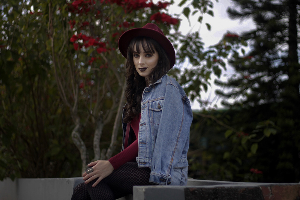 Outro detalhe é que testei para estas fotos um batom mais escuro, e é engraçado como uma simples cor nos lábios pode mudar todo o conceito. O visual ficou mais obscuro, sabe aquele ar de crepúsculo? Adoro as cores que se formam quando o sol está se pondo.