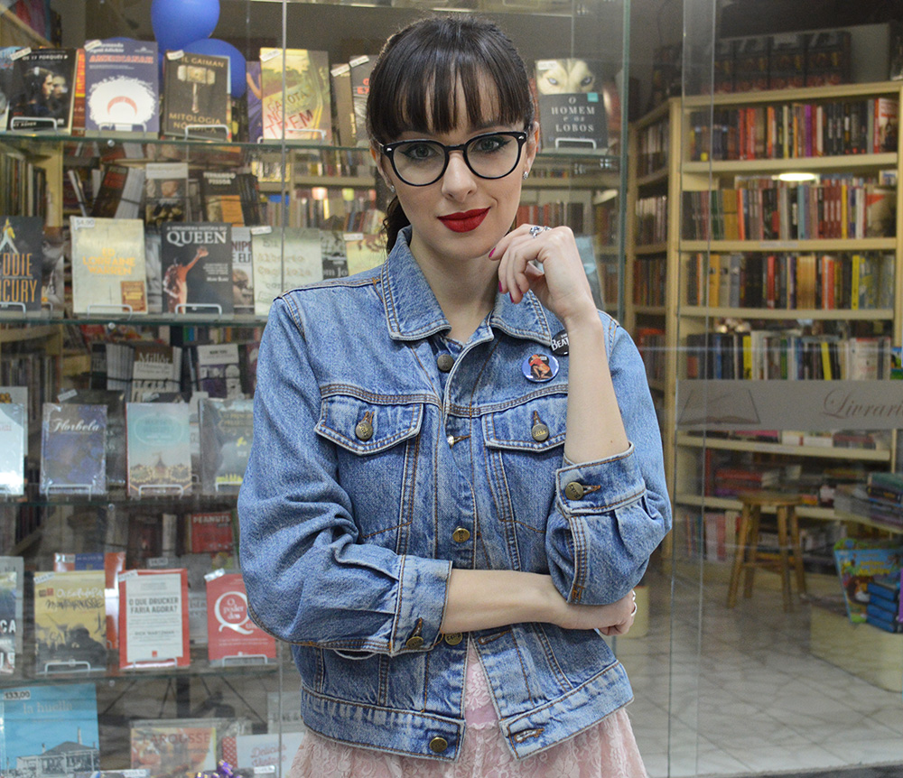 Usei também nesta produção os meus óculos de grau da Ray-Ban que já tenho há quase três anos. Eu realmente uso ele para “descanso” como dizem, mas que na verdade é para trabalho pois eu não fico mais na frente do notebook sem ele! Até um tempo nunca havia sentido a necessidade, mas de repente comecei a sentir dificuldades em me concentrar muito tempo trabalhando então tive que me adaptar, o que não foi algo difícil pois acho óculos de grau muito charmosos.