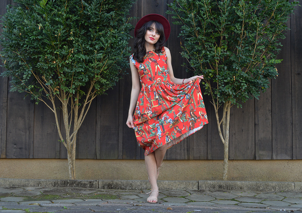 O mais legal dele é a estampa divertida de pessoa, se você observar vai ver as “cowboy girls” super animadas! Por passar essa vibe divertida que além de tudo é retrô escolhi uma música do Johnny Cash para nomear o visual de hoje!